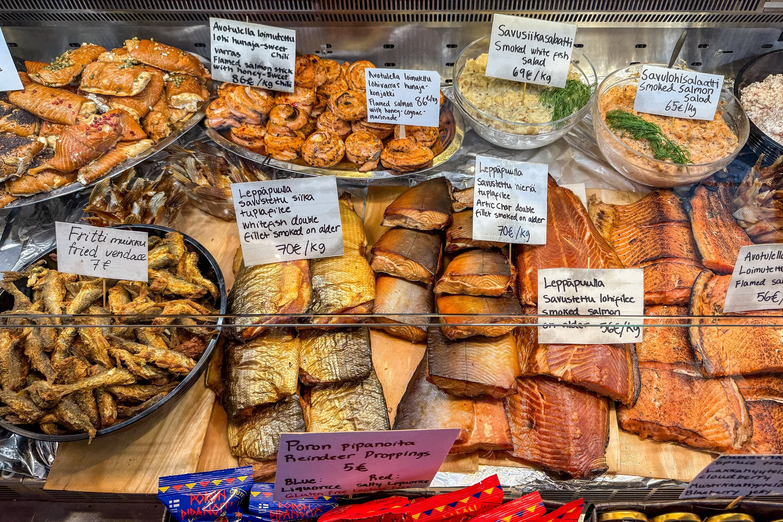 Visit Finland: "Opened in 1889, is the oldest and most iconic one, and the perfect place to get started. Located by the Market Square right by the Baltic Sea, the Old Market Hall serves everything from seafood, fine cheese and sweet treats to specialties such as reindeer meat. The Old Market Hall is a great place to enjoy affordable lunch. The salmon soup and fish sandwiches are a must-try! This is also the place to get picnic treats before catching a ferry to Suomenlinna."